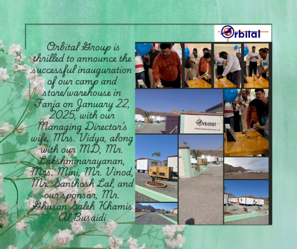 We, the Orbital Group, are beyond thrilled to announce the successful inauguration of our camp and store/warehouse in Fanja on 22nd Janunary 2025. This accomplishment fills us with immense pride, as we have dedicated ourselves to designing and constructing this camp, ensuring that it meets the highest standards set by PDO specifications.